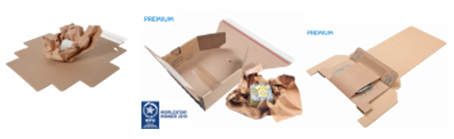 Klimaneutral produziert aus 100 % nachwachsenden Rohstoffen, kann das Packgut über eine innovative Spanntechnik mit Natronkrepppapier fixiert werden und garantiert maximalen Produktschutz ganz ohne Folie sowie ohne zusätzliches Füllmaterial. Die umweltfreundliche Verschlusskonstruktion sorgt für maximale Sicherheit ohne die Verwendung von Klebstoffen.