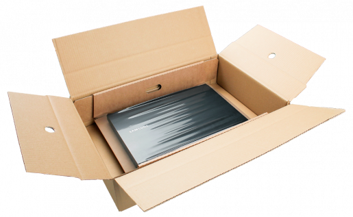 Die versandsichere Fixier- Verpackung für Netbooks und Laptops mit integriertem Zubehörfach